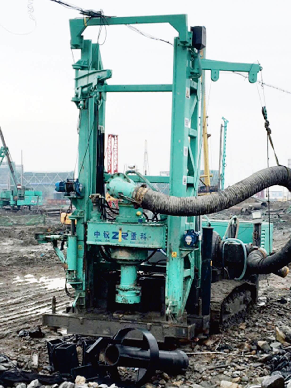 ZJD系列履帶式反循環(huán)全液壓鉆機主要用于中大口徑、大深度、復(fù)雜地層的樁基礎(chǔ)施工,特別適用于砂、卵石及巖層施工。該系列鉆機最大鉆孔直徑為4m,最深深度為150m,可在硬度100MPa以內(nèi)的巖石層施工,廣泛用于陸上建筑、水井鉆孔、港口碼頭、江、河、湖、海中的橋梁等樁基礎(chǔ)施工。